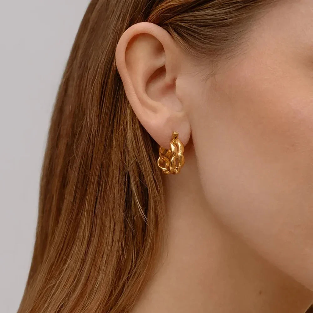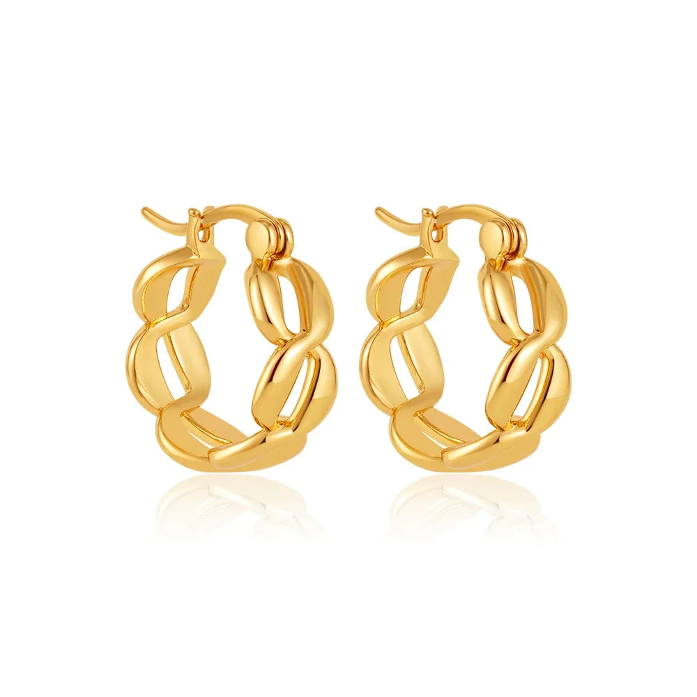 • Formato: Argola trançada com estrutura oca e acabamento polido.