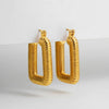 Brinco Retangular Dourado em Ouro 18k – Modernismo Texturizado | Saint Carvalho