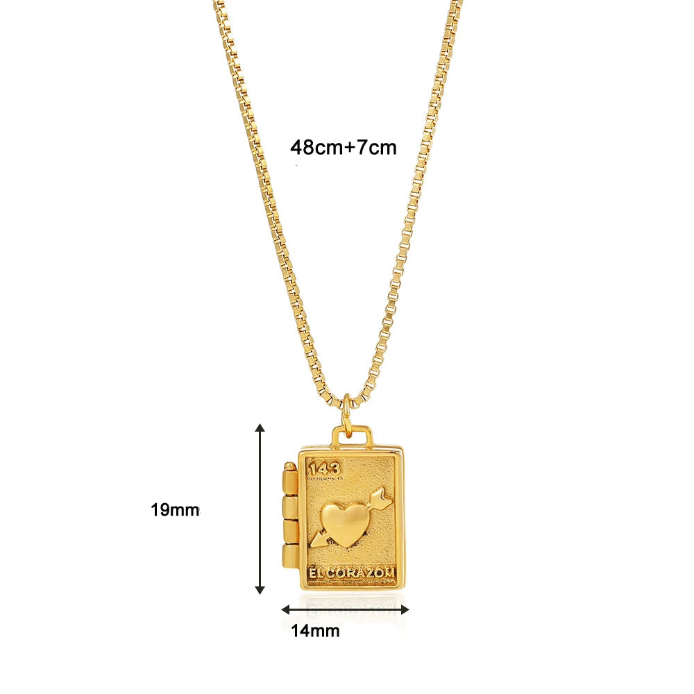 • Pingente: Relicário retangular com abertura funcional e inscrição “El Corazón”.